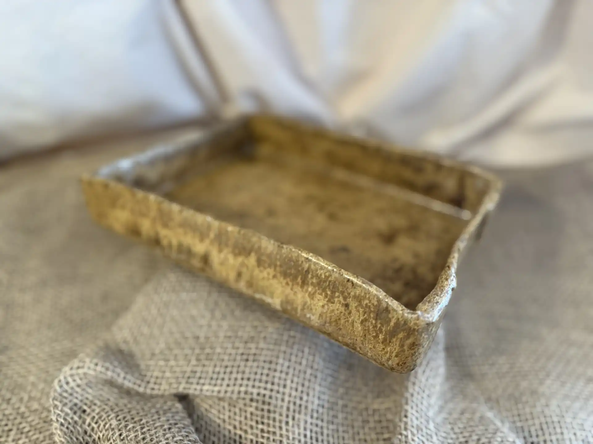 Rustic, antiqued baking dish with rich golden tones and simple, angular lines. Baking Dish Rectangle Artist : Carl Cox Label : Plates & Bowls Genre : Tableware Rustic, antiqued baking dish with rich golden tones and simple, angular lines.